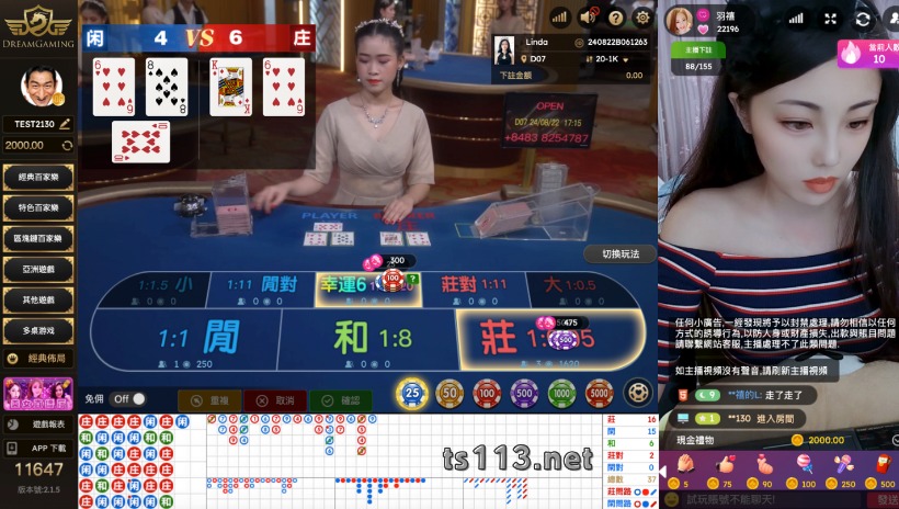 DG百家樂:DG百家樂受到玩家青睞,主要因其高清畫質的真人視訊和多樣的遊戲玩法。平台提供美女主播陪玩,專注於真人遊戲,為玩家帶來更加真實和互動的賭博體驗。