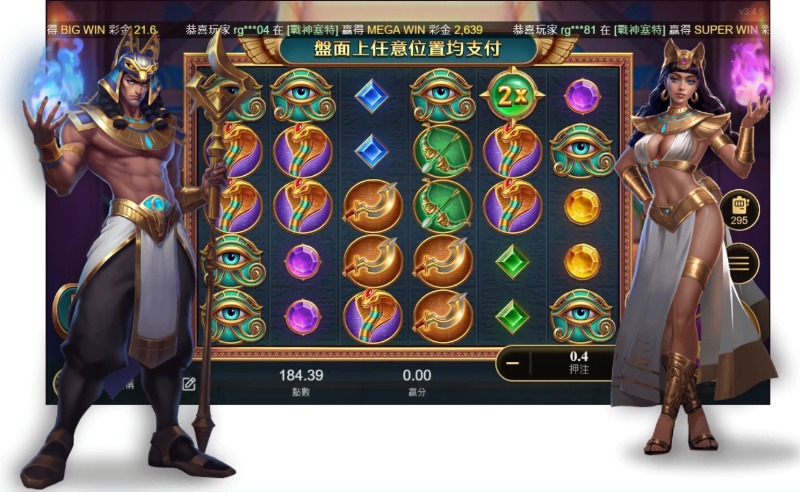 戰神賽特的獨特之處在於其無賠付線的遊戲設計,讓玩家享受更多變的玩法和更高的贏獎機率。遊戲中,當轉輪上出現4至6個寶藏符號時,玩家可進入15次的免費遊戲。每次中獎時,中獎的符號會消除並自動補滿遊戲盤面,直到不再有新的中獎組合出現。